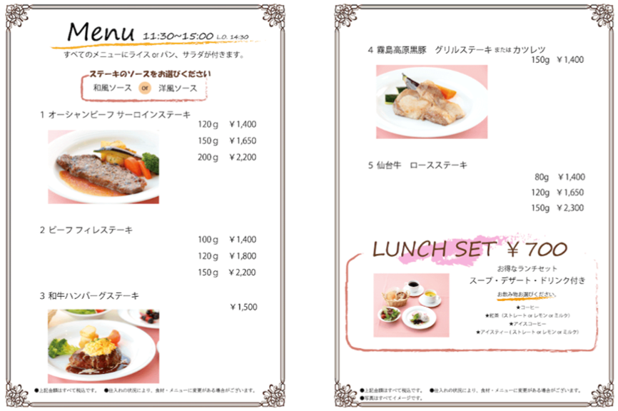 ロースステーキ 1100円